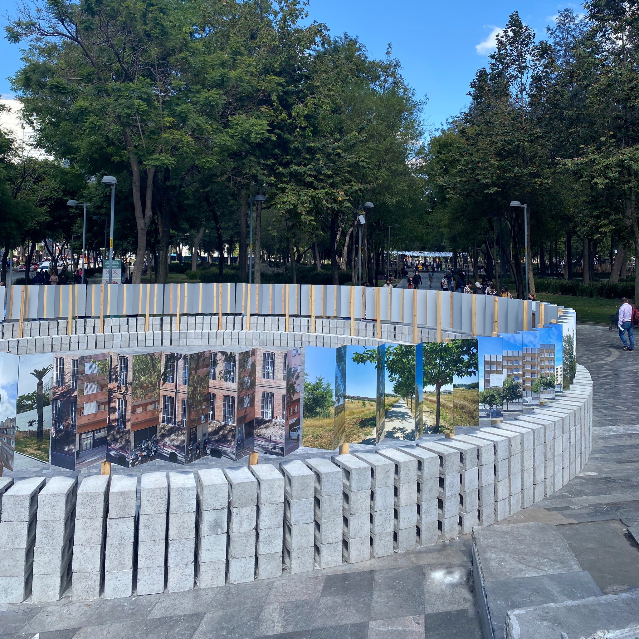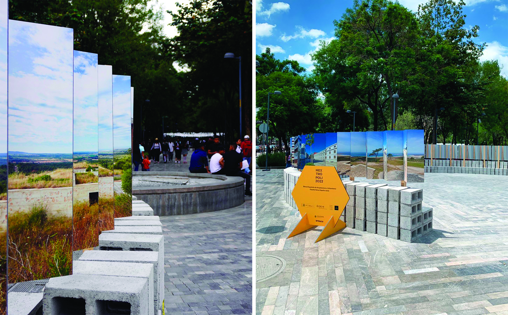 As their presence at Mextrópoli 2022, the Spanish Biennial of Architecture and Urbanism (BEAU) presented Campo | Contracampo. A pavilion of every awarded piece under the category of Works Outlook of the XV BEAU was exhibited with photographs taken by Jordi Bernardo. The installation also worked as a dialogue space. It is composed of 20 steel structures in zigzag that show the awarded pieces with a Qr that allows people to learn more about each one.