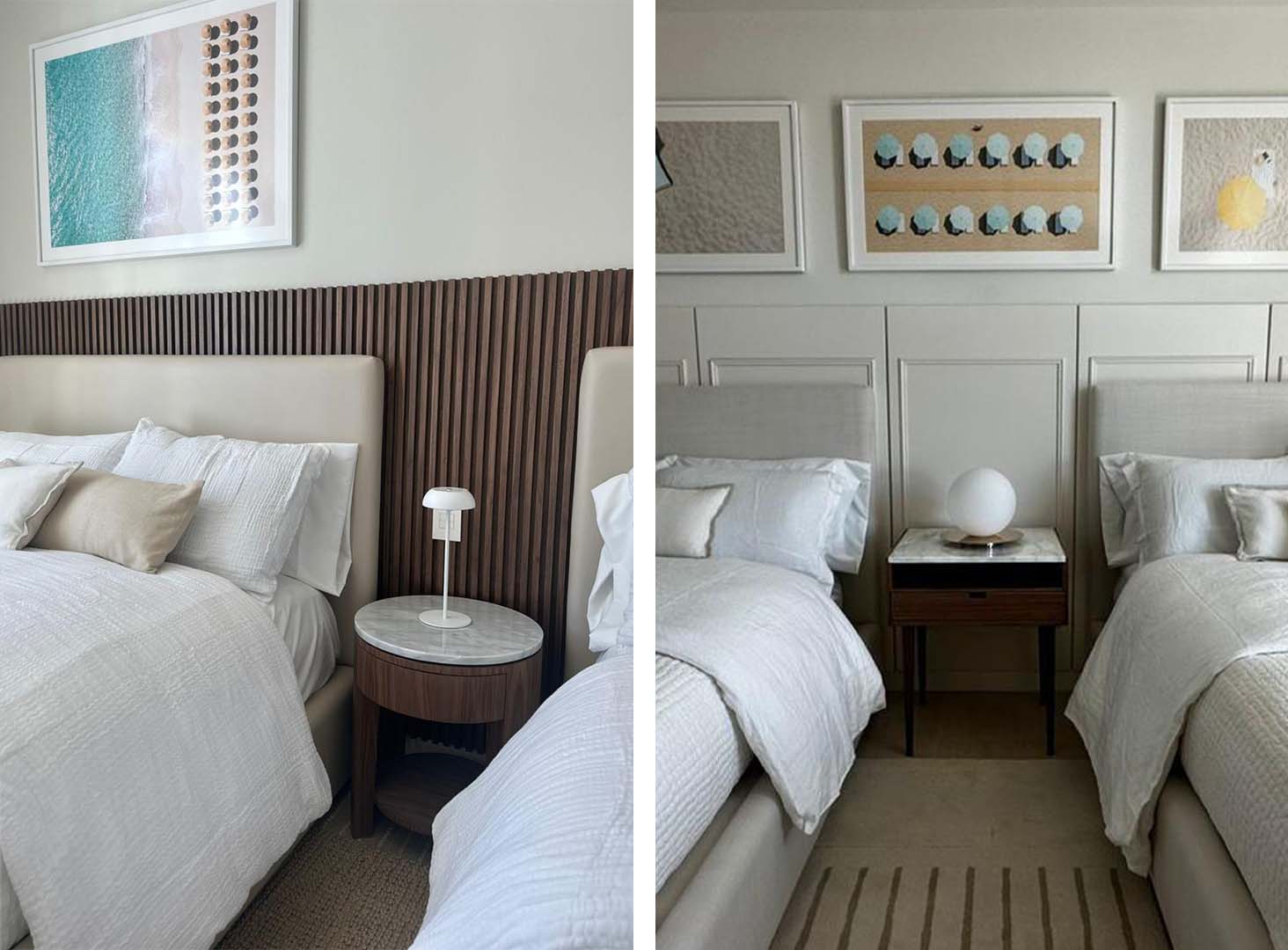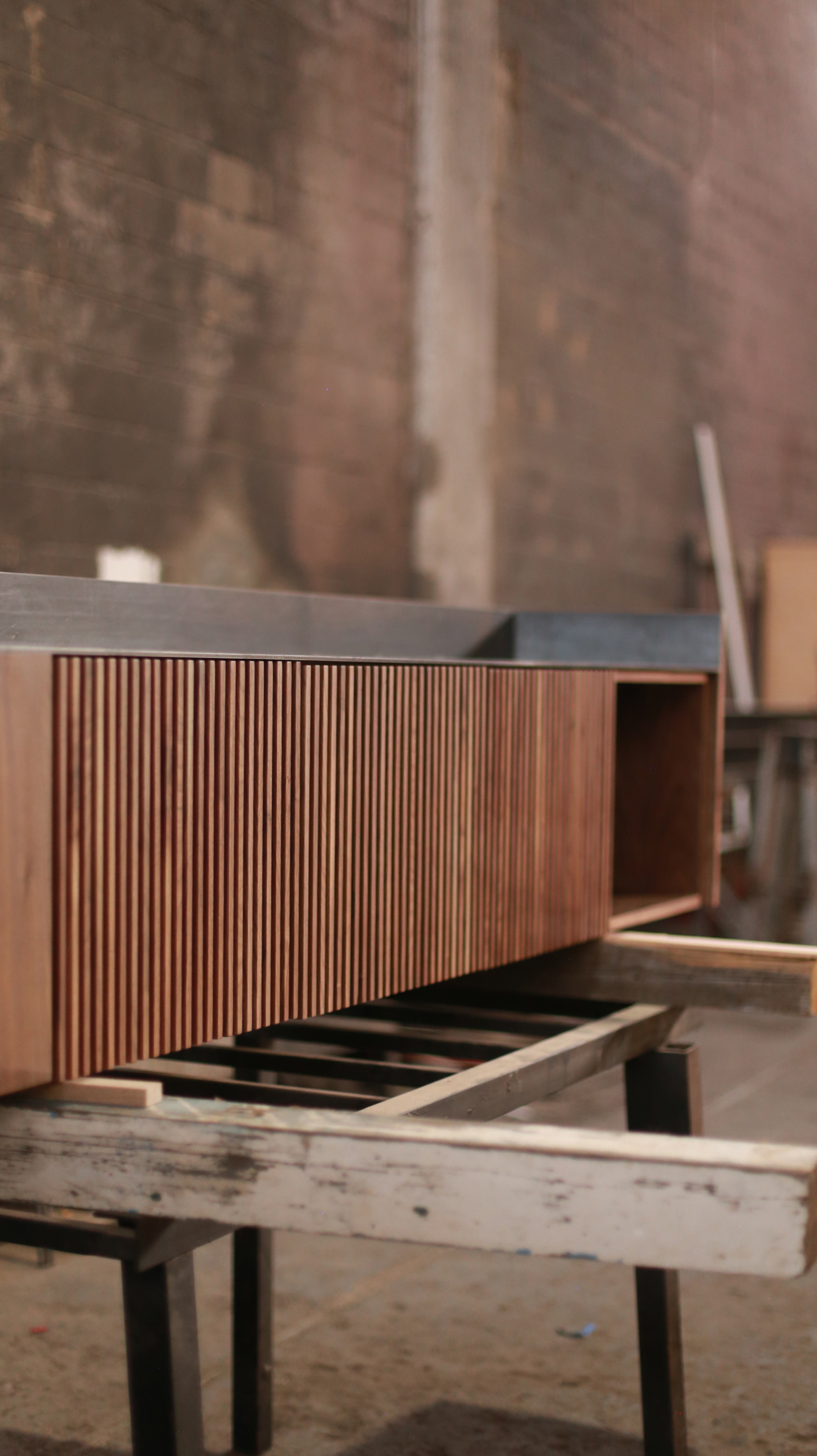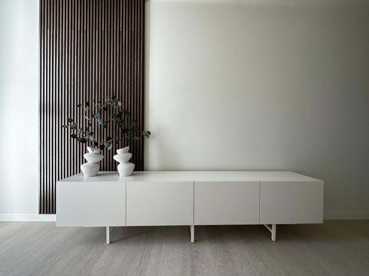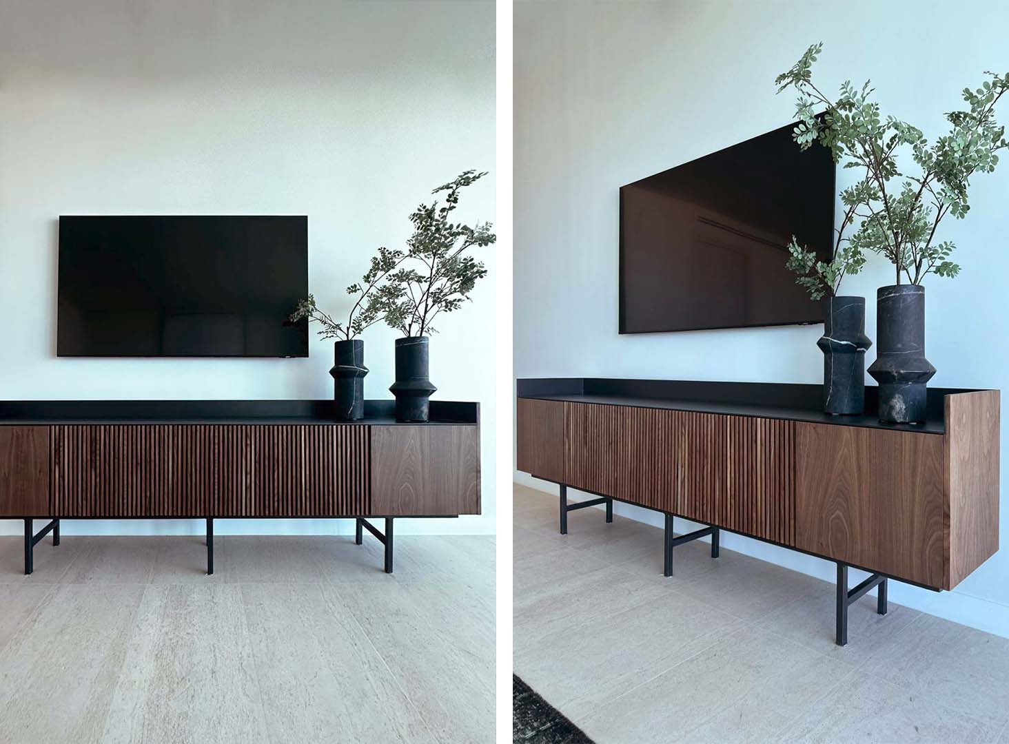 El proyecto es un departamento ubicado en Puerto Cancún, para el cual desarrollamos varios elementos del mobiliario utilizado por el equipo de Ale de la Isla para el interiorismo del espacio habitacional. El material principal fue el nogal, alguno de ellos en su color natural, otros tienen acentos de mármol blanco para sus superficies, mientras que otros son completamente blancos.
